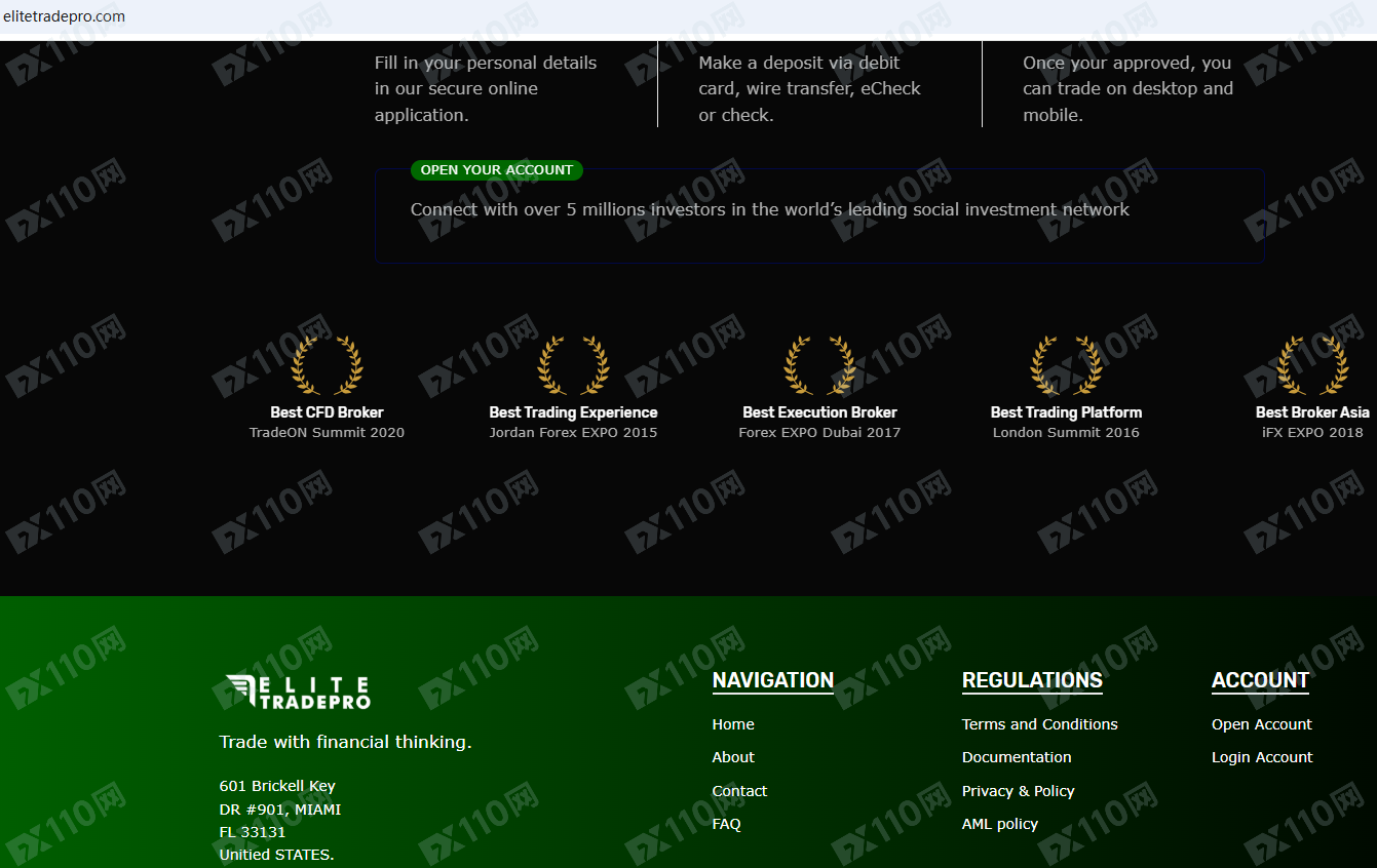 Elitetradepro平臺宣傳位于美國,受英國的監管,提供外匯、加密貨幣、股票等金融衍生品投資交易服務。