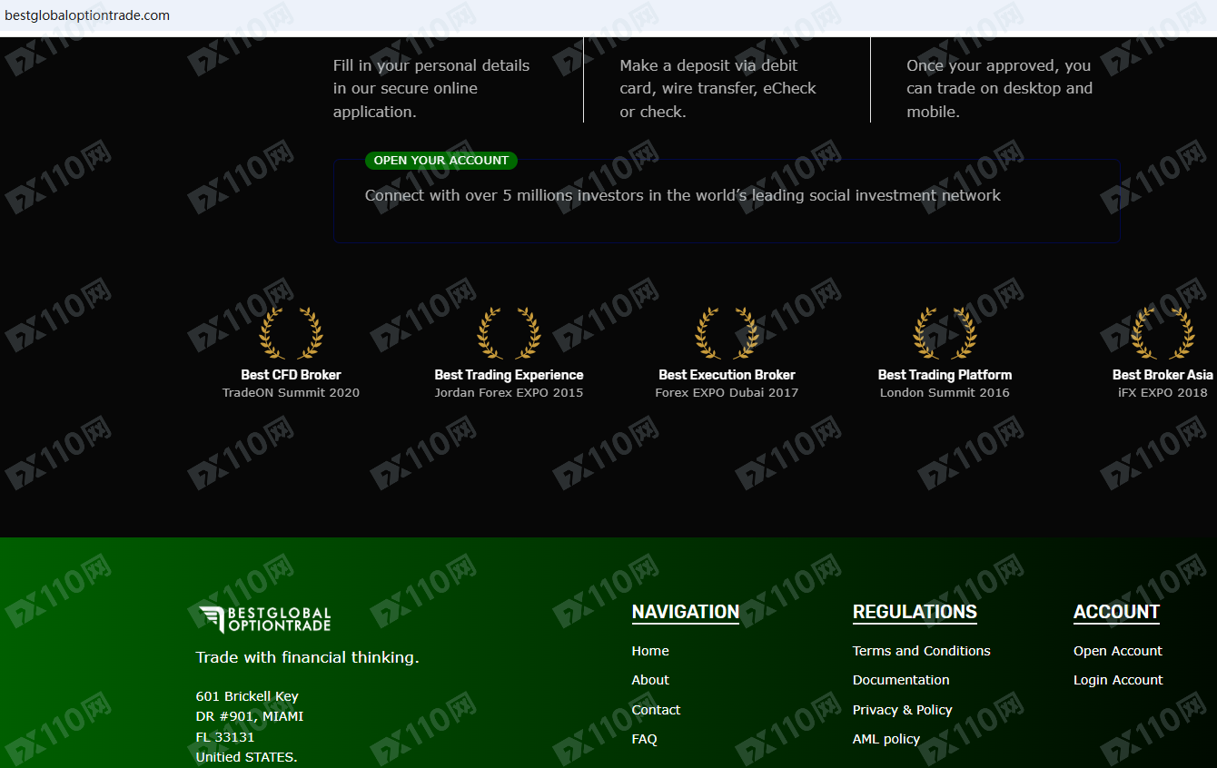Best Global Option Trade平臺宣傳位于美國,受英國的監管,提供外匯、加密貨幣、股票等金融衍生品投資交易服務。