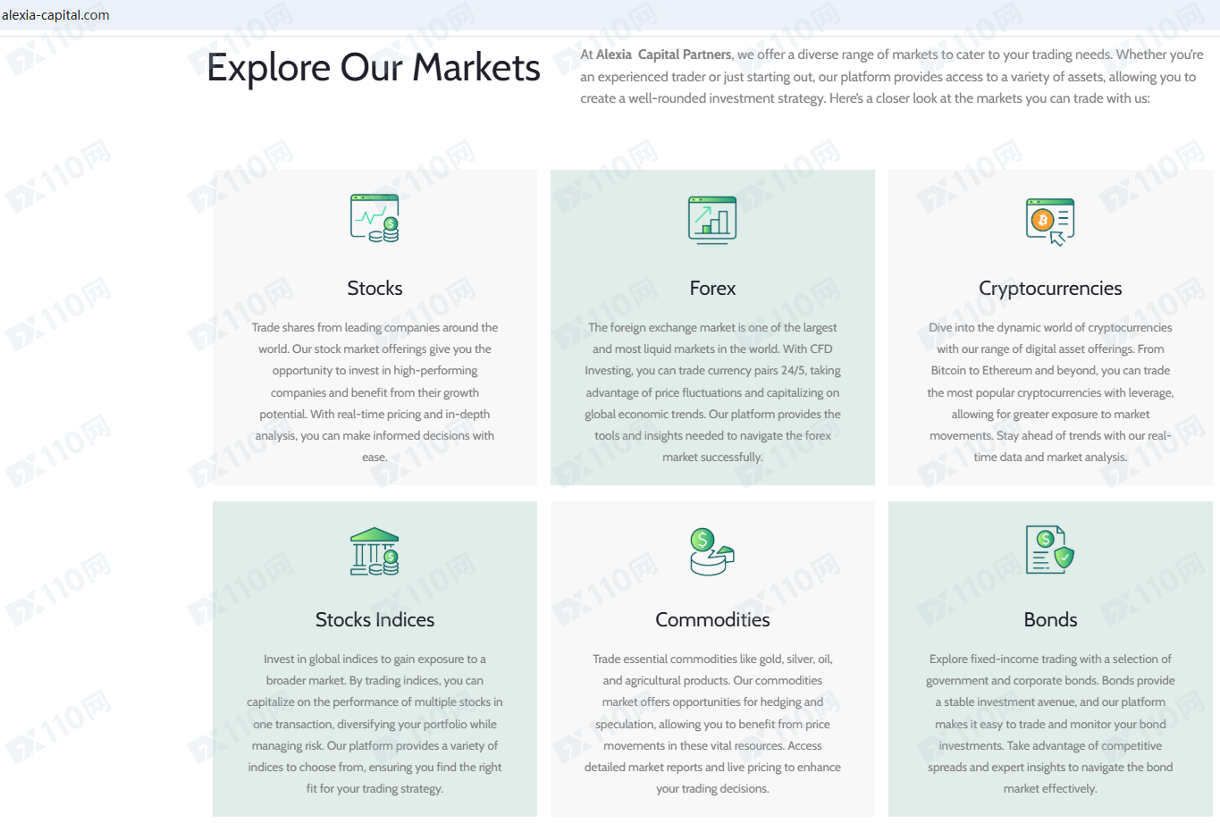Alexia Capital Partners平臺宣傳是一家位于英國的金融服務提供商,提供股票、外匯、加密貨幣、指數、大宗商品等金融衍生品投資交易服務,但并未公布其金融服務牌照以便核實。
