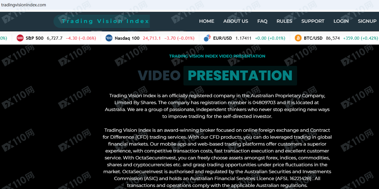 Trading Vision Index平臺宣傳是一家澳大利亞注冊的金融經紀商,提供外匯、指數、大宗商品、股票、加密貨幣等金融衍生品投資交易服務。