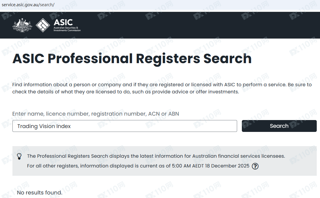 經查詢,該平臺并未獲得澳大利亞ASIC的授權和監管。