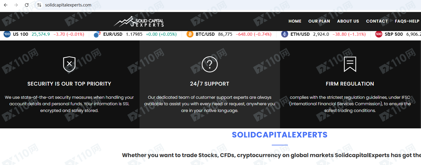 SolidcapitalExperts 平臺宣傳是一家在美國證券交易委員會SEC注冊的投資顧問公司,受國際金融服務委員會IFSC的監管,提供外匯、大宗商品、指數、加密貨幣等金融衍生品投資交易服務。