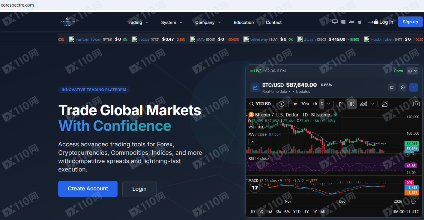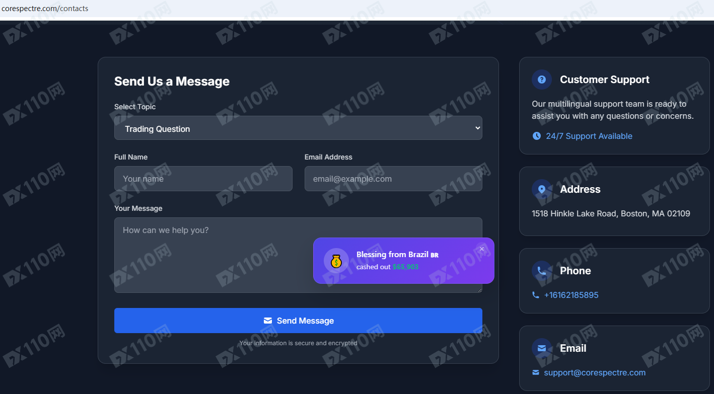 CoreSpectre Trades Option平臺宣傳是一家位于美國的金融服務提供商,提供外匯、加密貨幣、大宗商品、指數等金融衍生品投資交易服務,但并未公布其金融服務牌照以便核實。