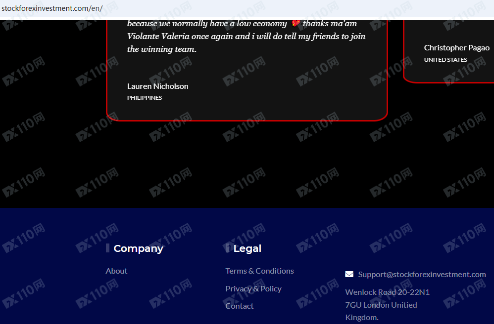 StockForexInvestment平臺宣傳是一家位于英國的國際金融投資公司,獲得全球許可和監管,提供加密貨幣、股票、指數、大宗商品、外匯等金融衍生品投資交易服務,但并未公布其詳細的金融服務牌照以便核實。