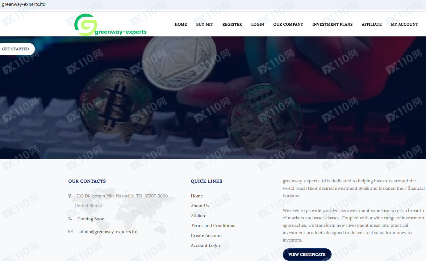 Greenway Experts平臺宣傳位于美國,獲得英國FCA和塞浦路斯CySEC的監管,提供加密貨幣、外匯等金融衍生品投資交易服務。