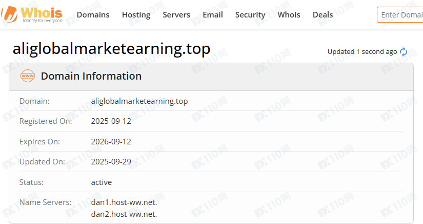 平臺域名成立時間為2025年9月12日。