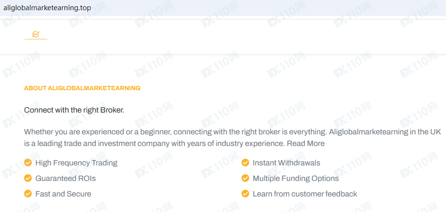 Aliglobalmarketearning平臺宣傳是一家位于英國的投資公司,提供加密貨幣、外匯等金融衍生品投資交易服務。