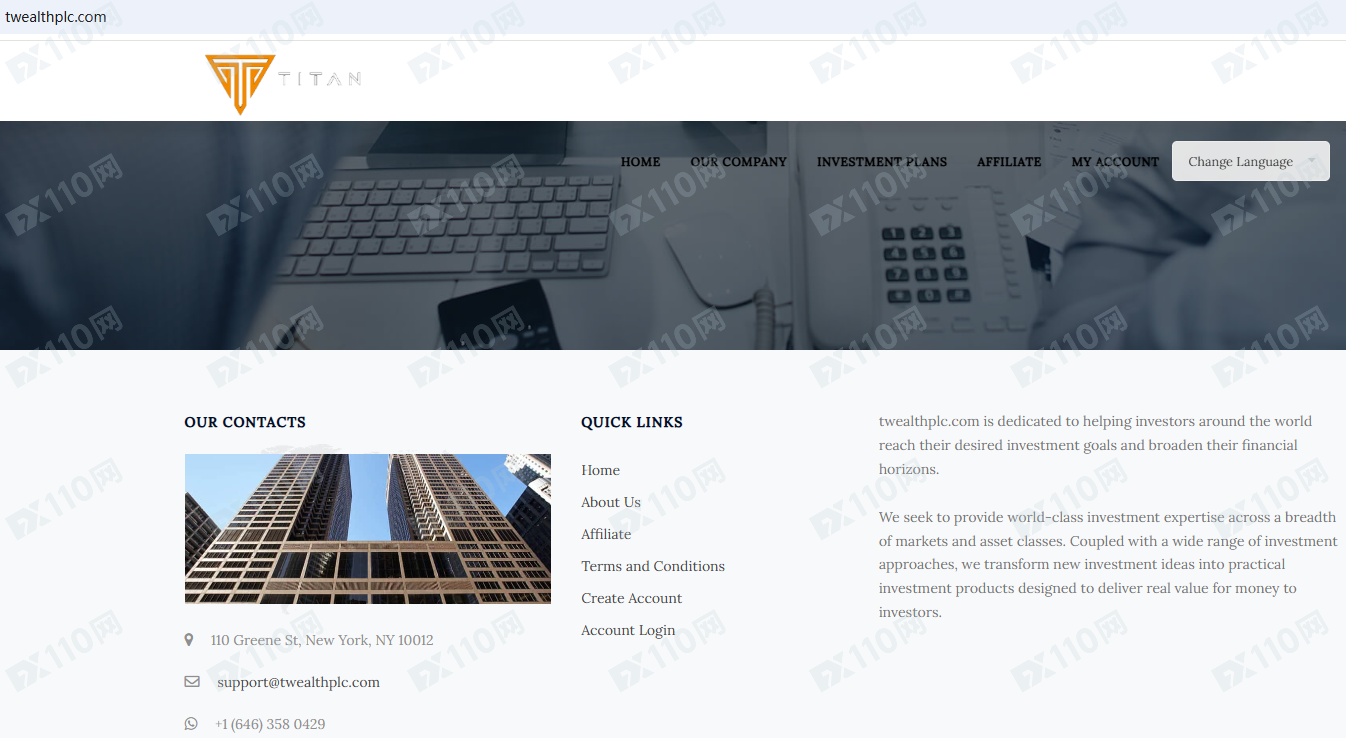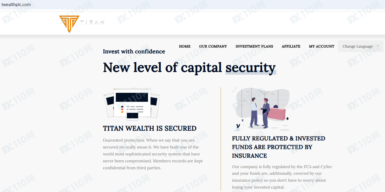 Titan Wealth平臺宣傳位于美國,獲得英國FCA和塞浦路斯CySEC的監管,提供加密貨幣、外匯等金融衍生品投資交易服務。