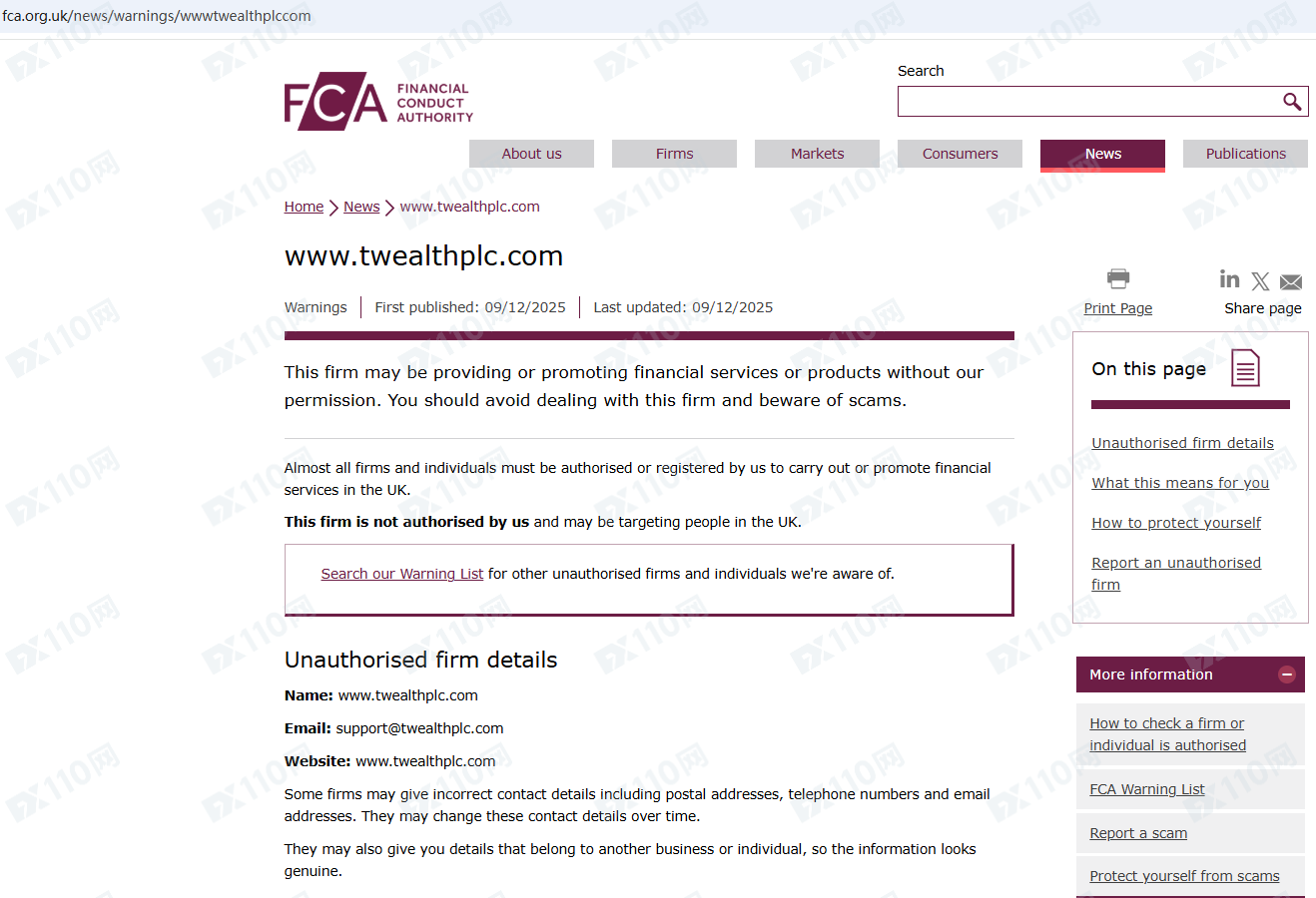 因未經授權許可提供金融產品投資服務,Titan Wealth已被英國FCA列入警示黑名單,請遠離!
