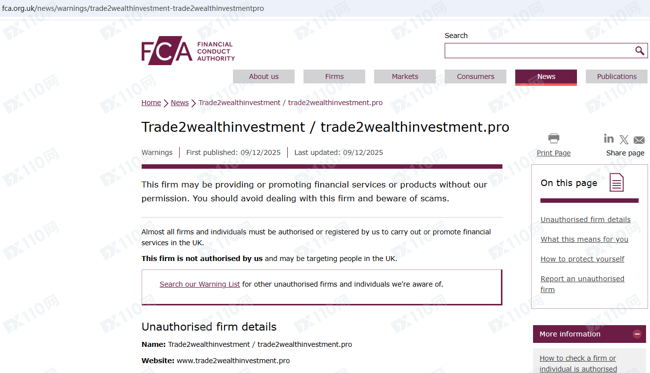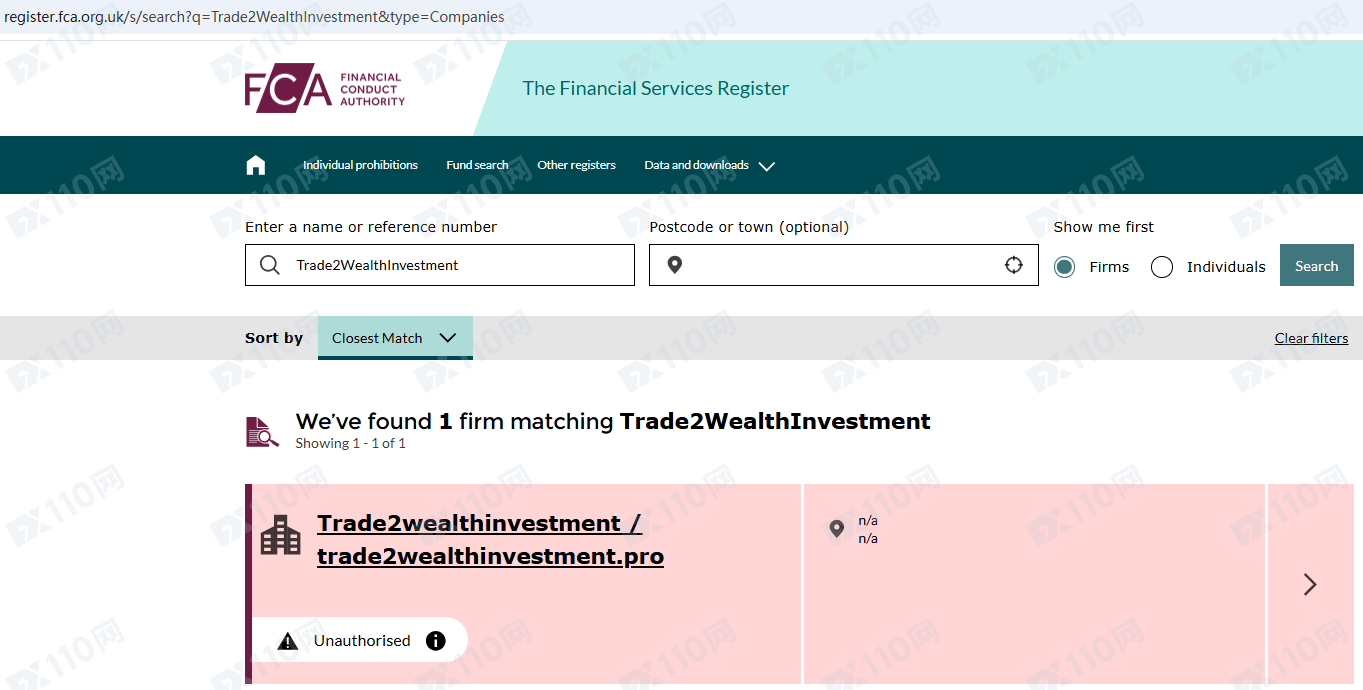 因未經授權許可提供金融產品投資服務,Trade2WealthInvestment已被英國FCA列入警示黑名單,請遠離!