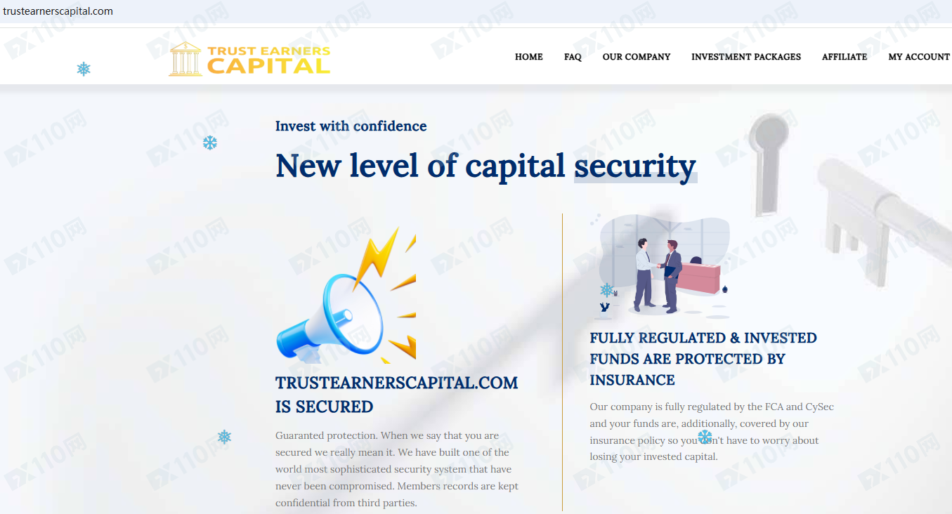 Trust Earners Capital平臺宣傳位于新西蘭,獲得英國FCA和塞浦路斯CySEC的監管,提供加密貨幣、外匯等金融衍生品投資交易服務。