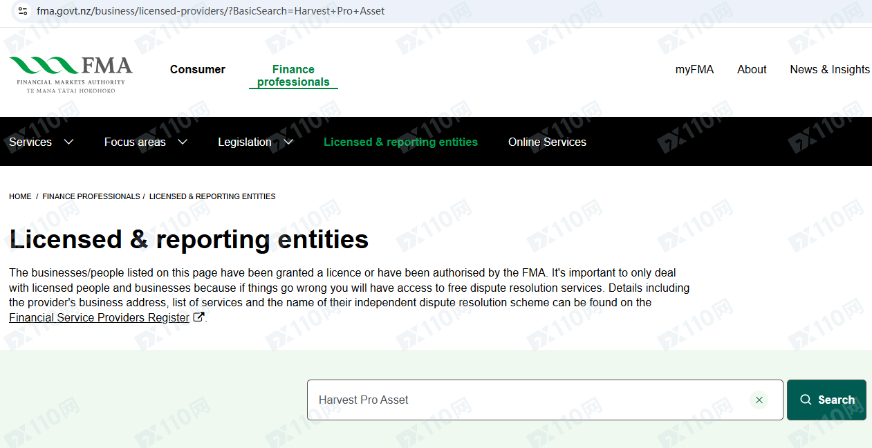 Harvest Pro Asset平臺宣傳位于新西蘭,獲得英國FCA和塞浦路斯CySEC的監管,提供加密貨幣、外匯等金融衍生品投資交易服務。