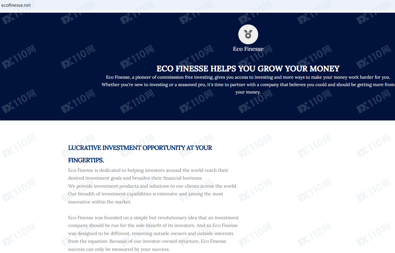 Eco Finesse平臺宣傳提供加密貨幣投資交易服務,但并未公布其經營地址和金融服務牌照以便核實。
