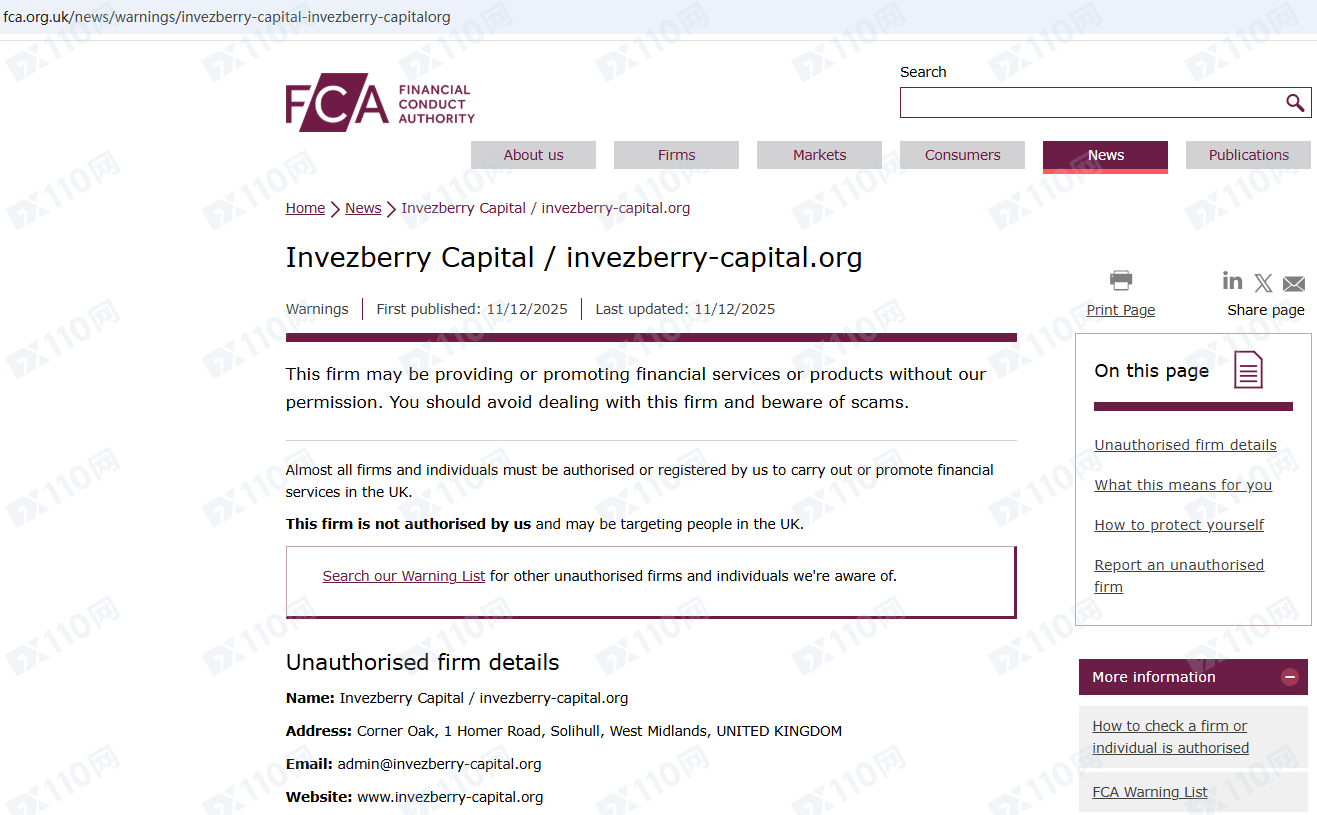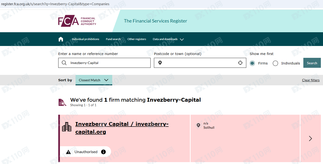 因未經授權許可提供金融產品投資服務,Invezberry-Capital已被英國FCA列入警示黑名單,請遠離!