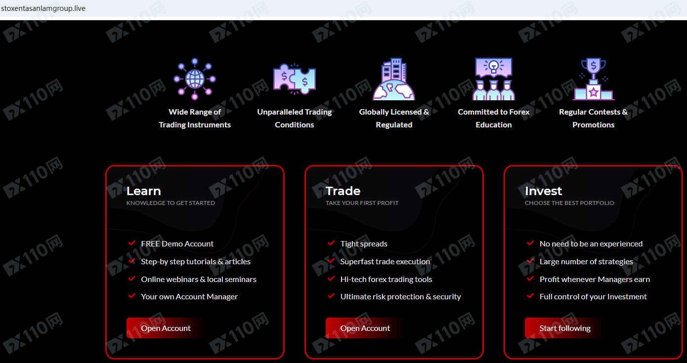 Stoxentasanlamgroup平臺宣傳位于澳大利亞,獲得全球許可和監管,提供外匯、加密貨幣、指數、股票等金融衍生品投資交易服務,但并未公布其詳細的監管信息以便核實。