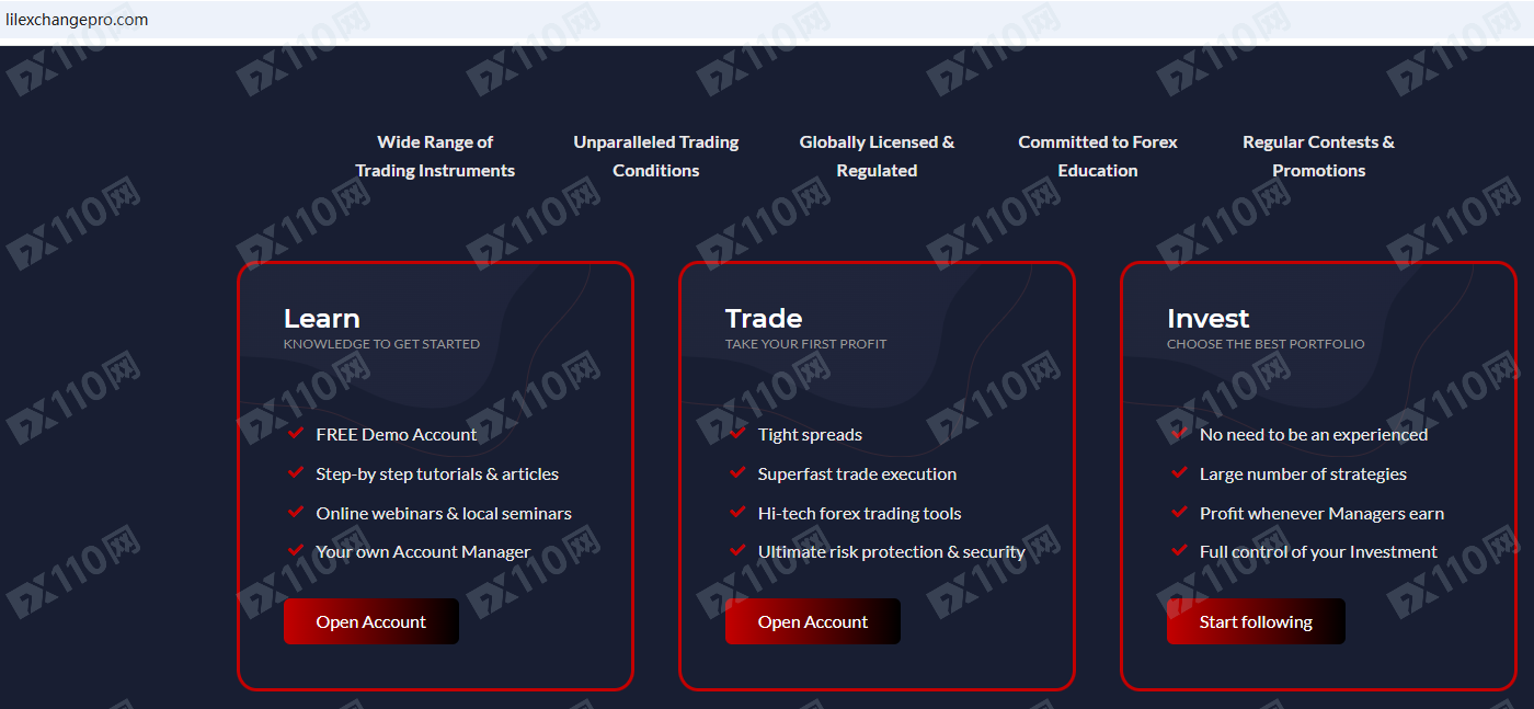 Lilexchangepro平臺宣傳是一家獲得全球許可和監管的金融投資公司,提供外匯、加密貨幣、指數、股票、能源、大宗商品等金融衍生品投資交易服務,但并未公布其經營地址和金融服務牌照以便核實。