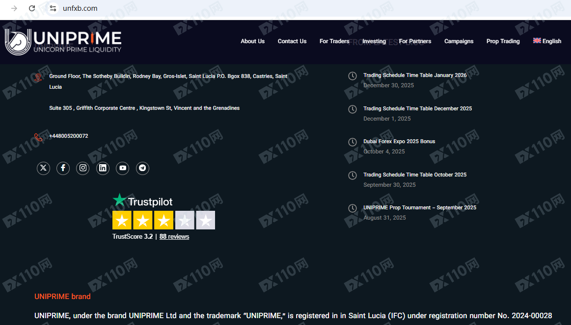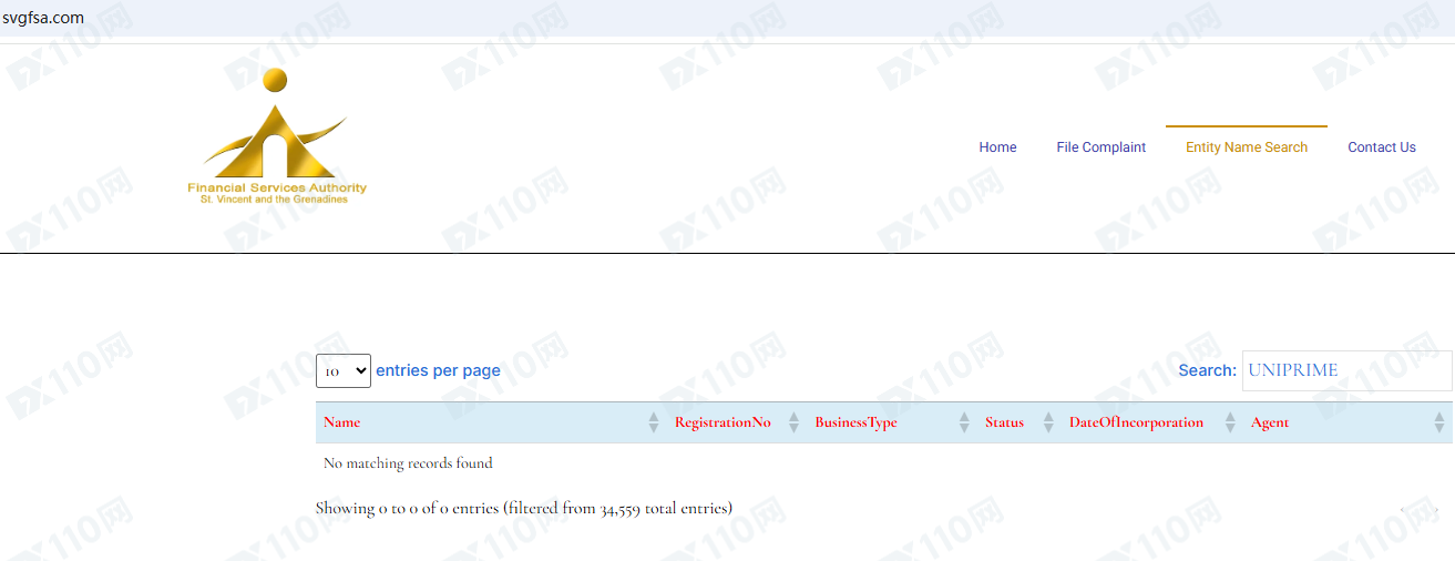 經查詢,我們在圣文森特FSA公司注冊列表中沒有查詢到登記,在圣盧西亞國際金融中心IFC有查詢到UNIPRIME LTD,但請注意,圣盧西亞國際金融中心IFC僅是國際商業公司注冊處,不提供金融衍生品經紀服務的授權許可。