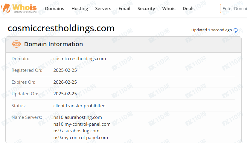 因未經授權許可提供金融產品投資服務,CosmicCrest Holdings已被英國FCA列入警示黑名單,請遠離!