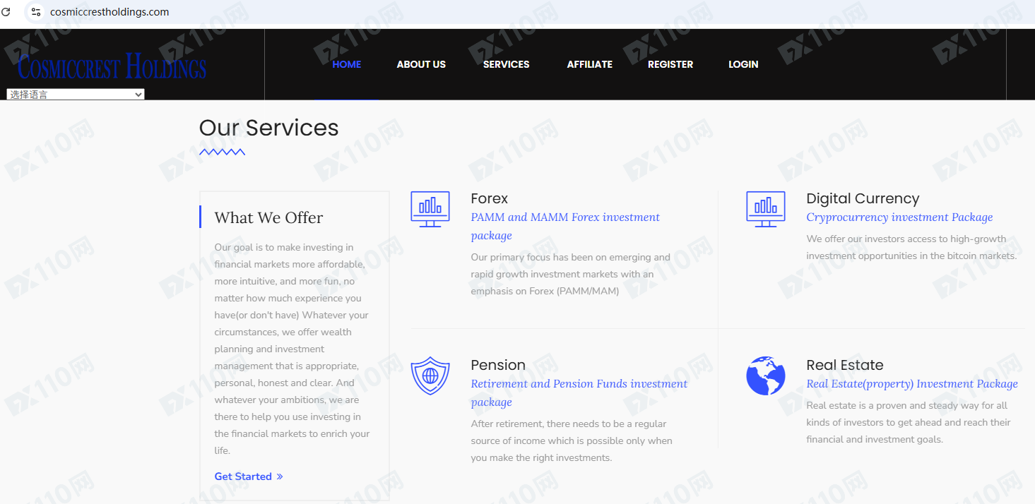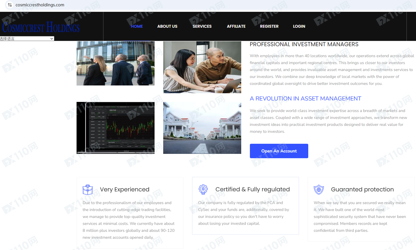 CosmicCrest Holdings平臺宣傳獲得英國FCA和塞浦路斯CySEC的監管,提供加密貨幣、外匯等金融衍生品投資交易服務。