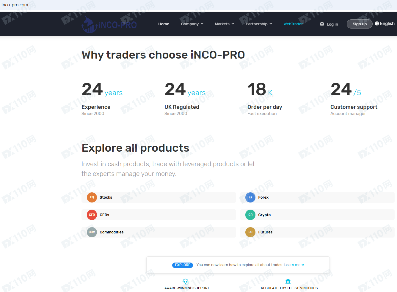 iNCO-PRO平臺宣傳受英國和圣文森特的監管,提供股票、外匯、加密貨幣、大宗商品等等金融衍生品投資交易服務。