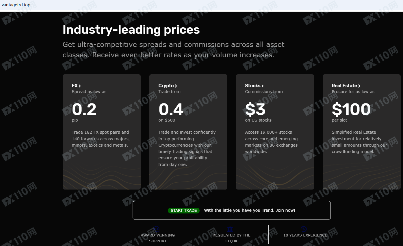 Vantage Trade平臺宣傳位于英國,受英國的監管,提供外匯、加密貨幣、股票等金融衍生品投資交易服務。