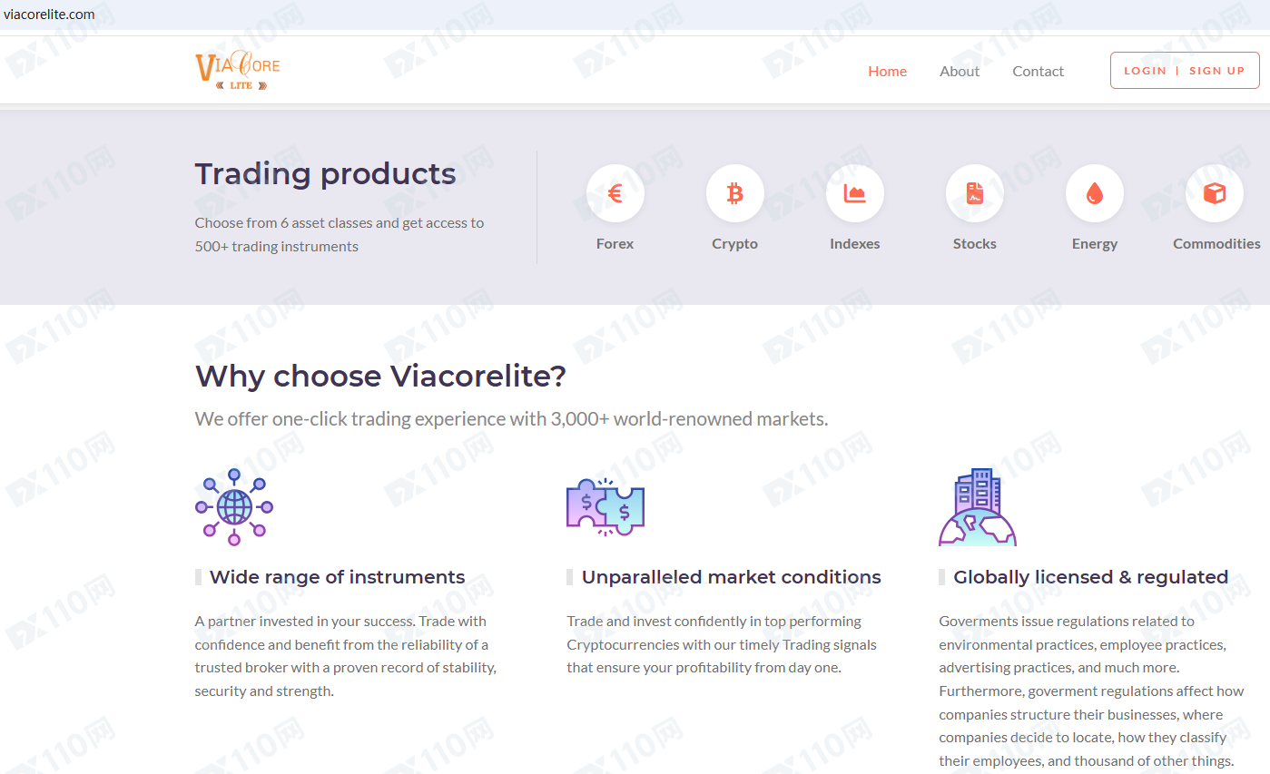 Viacorelite平臺宣傳位于英國,獲得全球許可和監管,提供外匯、加密貨幣、指數、股票、能源、大宗商品等金融衍生品投資交易服務。