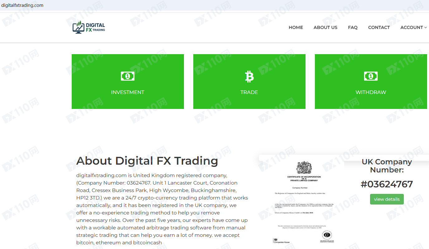 Digital FX Trading平臺宣是一家英國注冊并獲得牌照的經紀商,提供外匯、加密貨幣、股票等金融衍生品投資交易服務。
