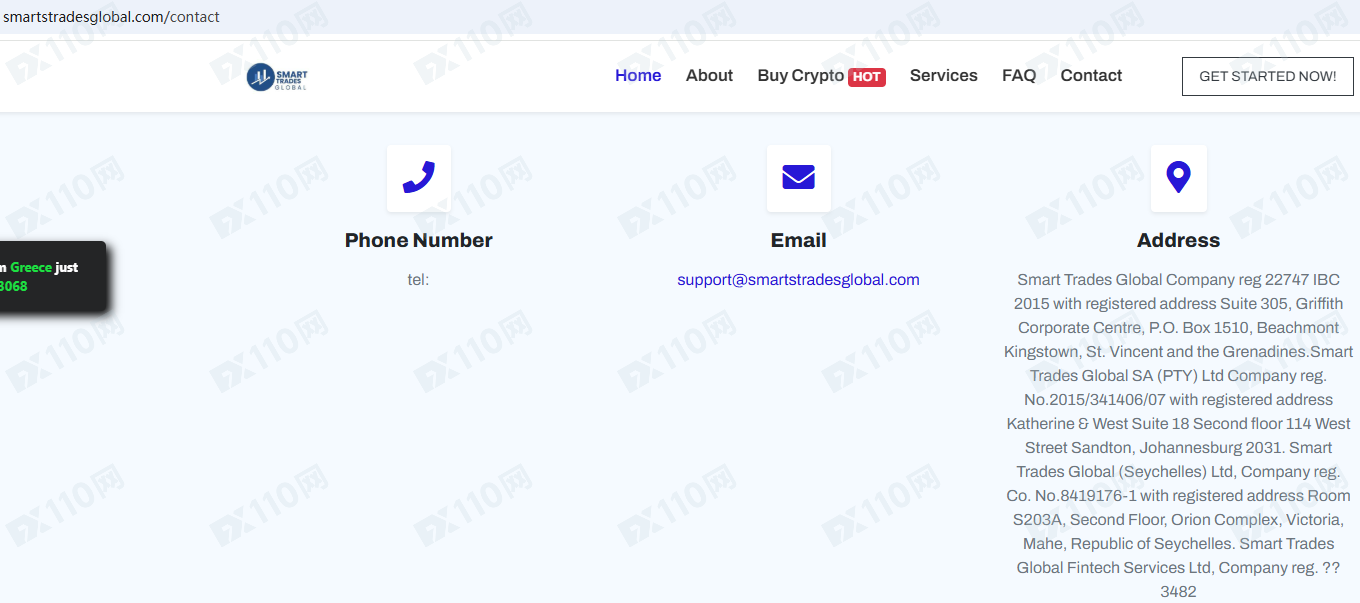 Smart Trades Global平臺宣傳公司地址設在圣文森特,公司注冊號為22747 IBC 2015,在南非和塞舌爾也有公司注冊,分別是Smart Trades Global SA (PTY) Ltd和Smart Trades Global (Seychelles) Ltd,提供加密貨幣、外匯等金融衍生品投資交易服務。