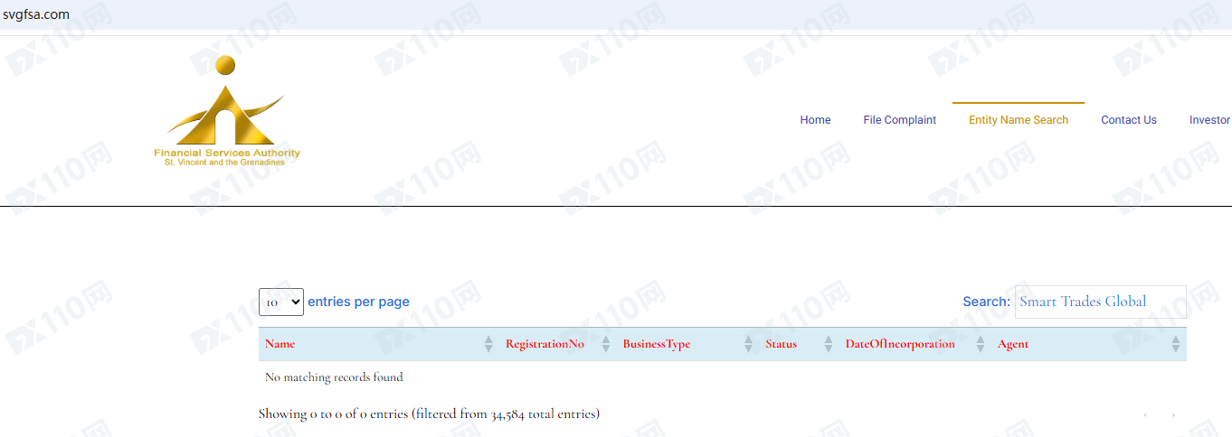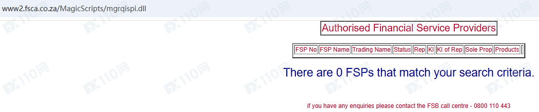 經查詢,在圣文森特FSA、南非FSCA和塞舌爾FSA均未查詢到該平臺的登記。
