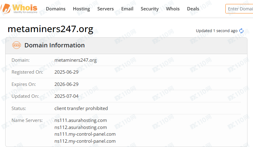 平臺域名成立時間為2025年6月29日。