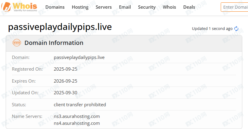 平臺域名成立時間為2025年9月25日。
