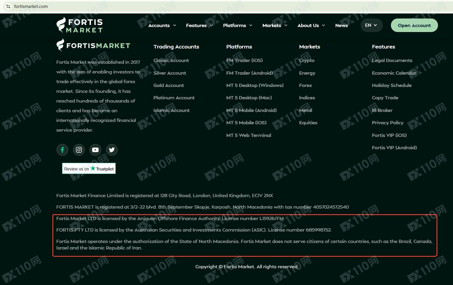 Fortis Market平臺宣傳是由Fortis Market LTD和FORTIS PTY LTD運營,分別獲得昂儒昂離岸金融管理局(AOFA)和澳大利亞證券及投資委員會(ASIC)的監管,提供外匯、指數、貴金屬、貨幣等金融衍生品投資交易服務。