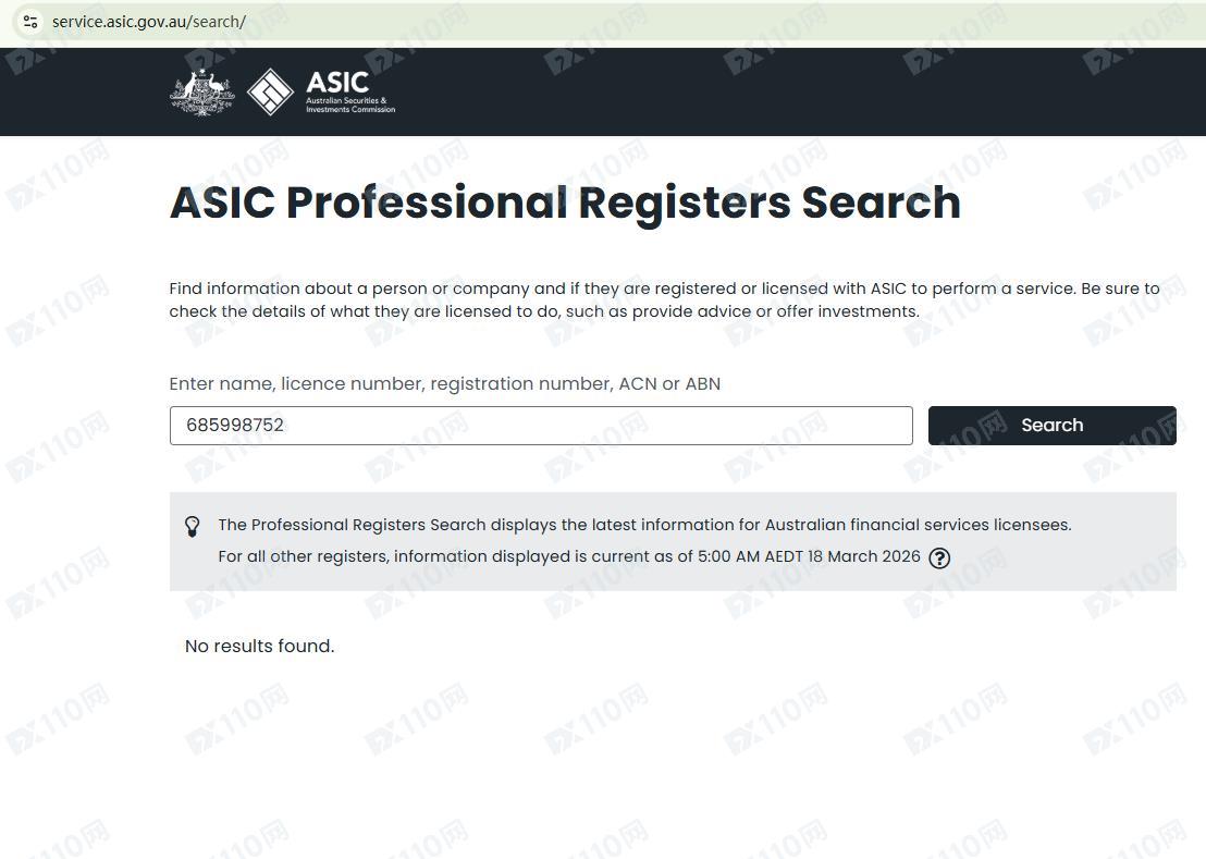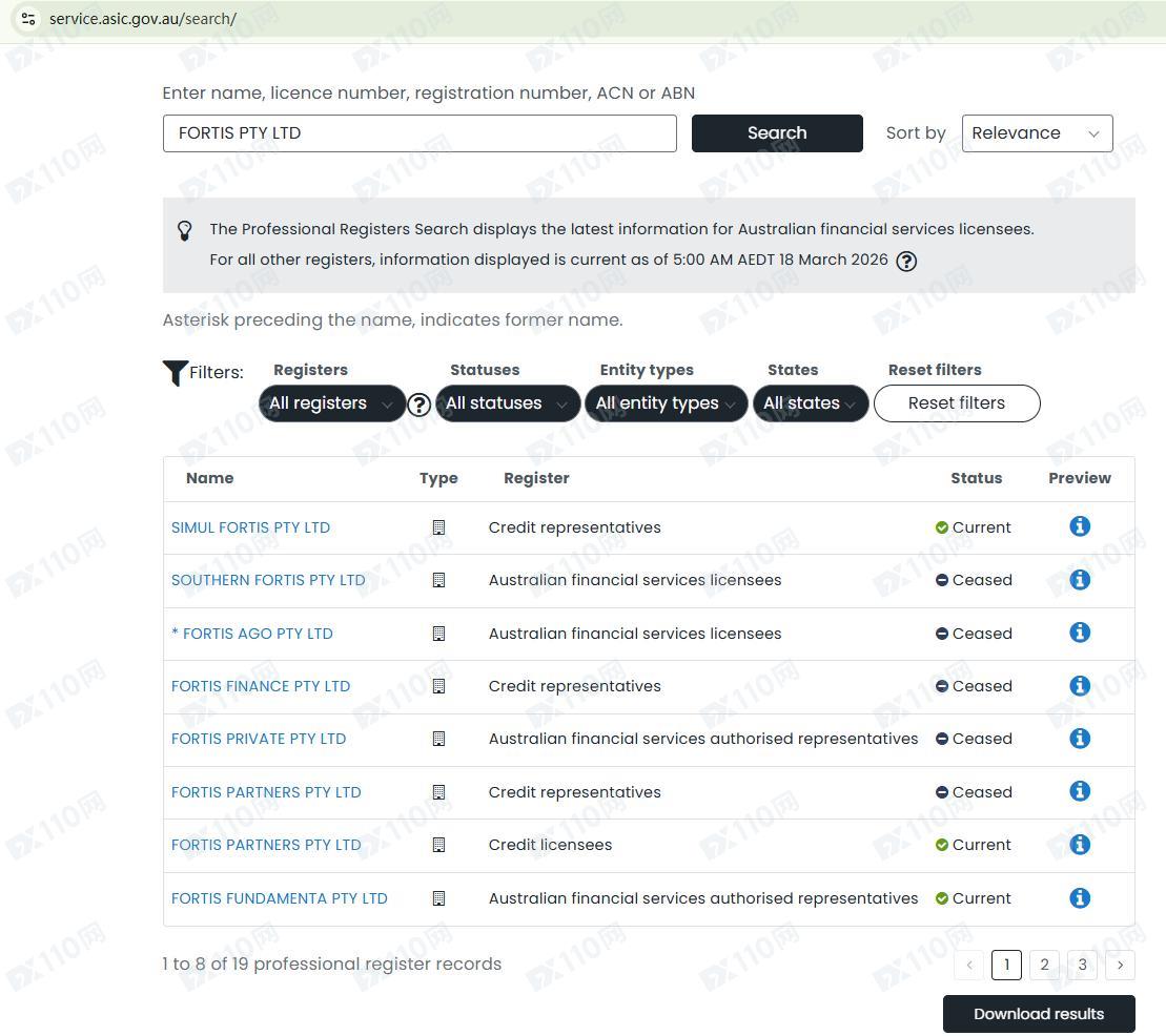 此外,我們在澳大利亞證券及投資委員會(ASIC)的持牌公司查詢頁未搜索到任何Fortis Market相關的結果,顯然該平臺完全是虛假宣傳!