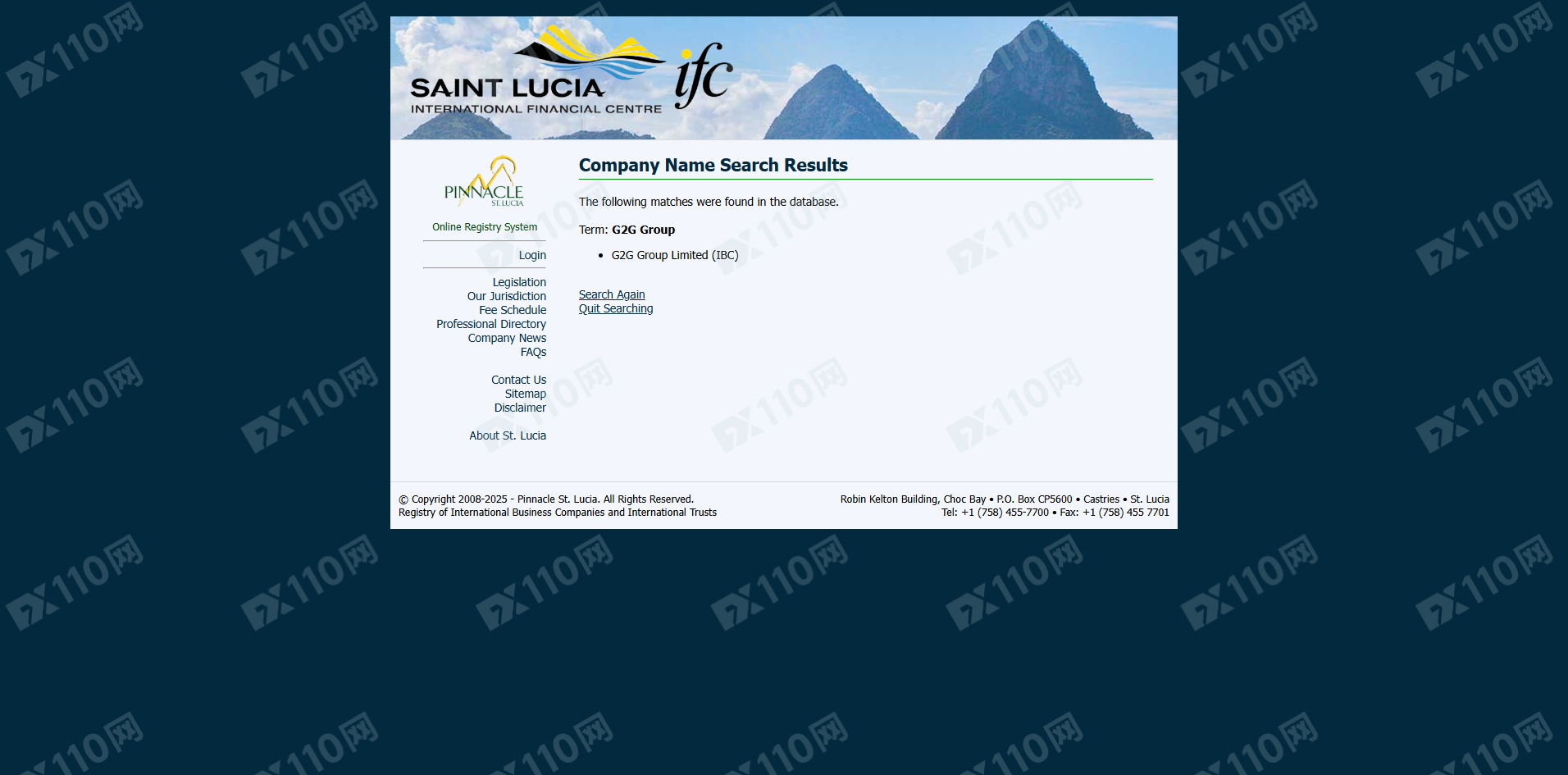經查詢,在圣盧西亞國際金融中心(IFC)的公司列表中有查詢到G2G Group的公司名,但請注意,圣盧西亞國際金融中心IFC僅是國際商業公司注冊處,不提供金融衍生品經紀服務的授權許可。顯然該平臺目前并未持有有效的監管牌照。