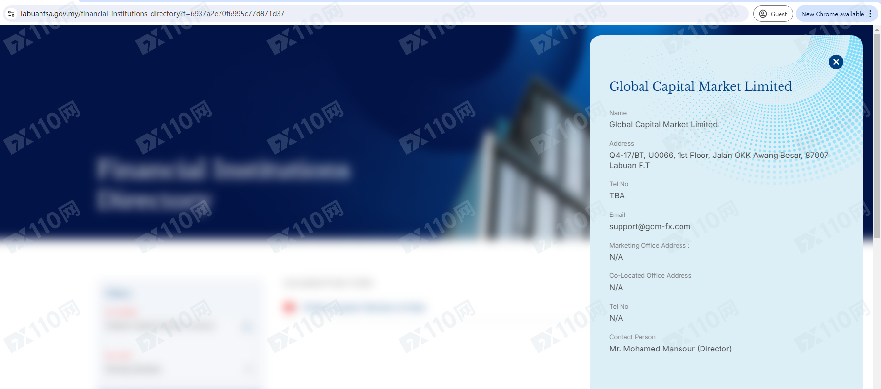 經查詢,在納閩金融服務管理局上搜索到對應的結果,但登記的域名郵箱為gcm-fx.com,與該平臺的網址不符,顯然該平臺是套牌監管。