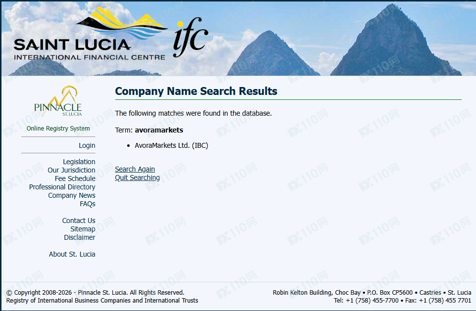 經查詢,在圣盧西亞IFC公司注冊登記處有搜索到該宣稱公司名稱的登記,但請注意,公司注冊不代表有監管,顯然該公司目前并未持有有效監管牌照。