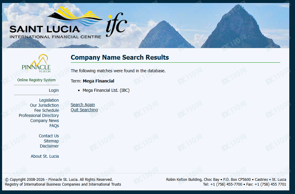 經查詢,在圣盧西亞IFC公司注冊登記處有搜索到該宣稱公司名稱的登記,但請注意,公司注冊不代表有監管,顯然該公司目前并未持有有效監管牌照。