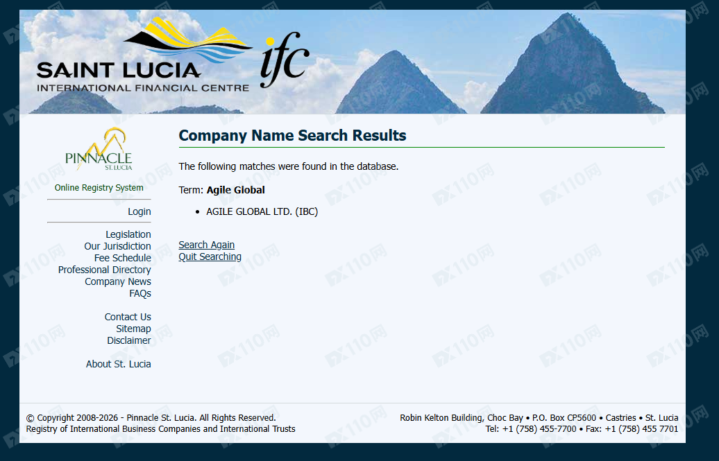 經查詢,在圣盧西亞IFC公司注冊登記處有搜索到該宣稱公司名稱的登記,但請注意,公司注冊不代表有監管,顯然該公司目前并未持有有效監管牌照。