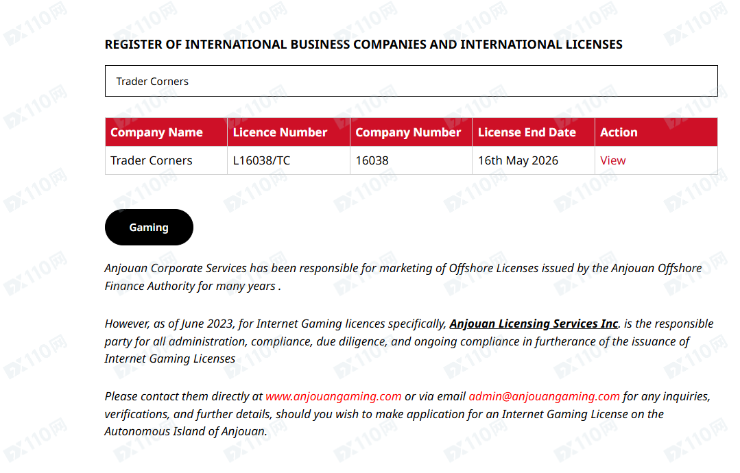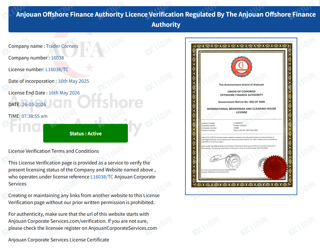 經查詢,在科摩羅AOFA公司注冊登記處有搜索到該宣稱公司名稱的登記,但未登記網址!