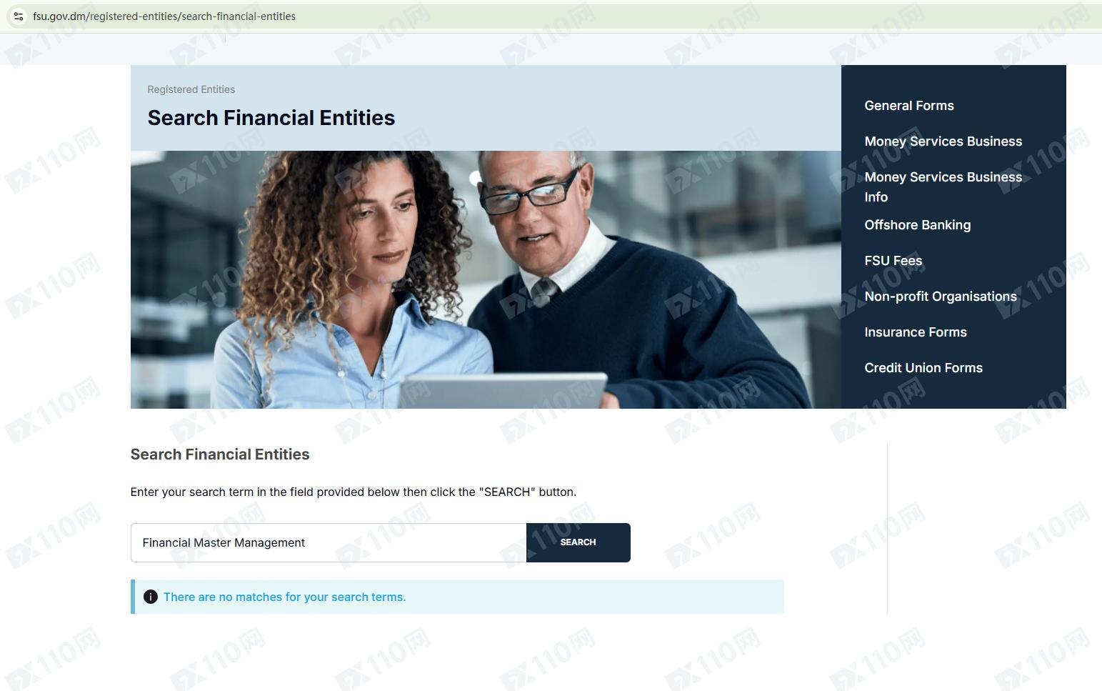 經查詢,在多米尼克聯邦財政部金融服務部門的公司列表中未查詢到ATN Capital Ltd. 和Financial Master Management Ltd.,且該監管機構本身不監管外匯,顯然該平臺實際上并無監管!