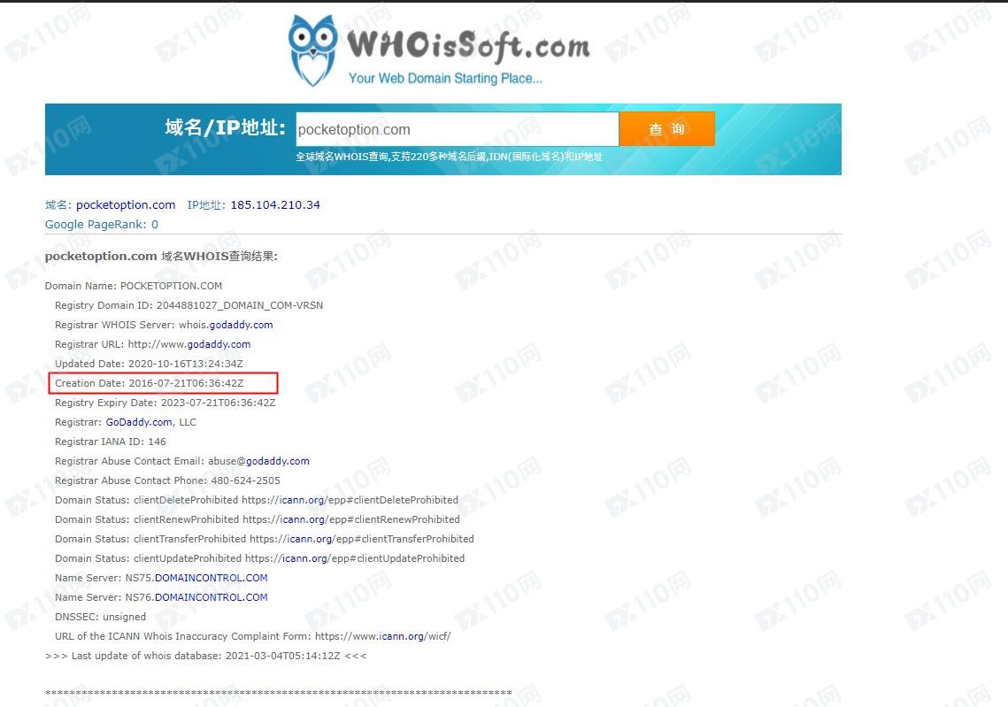 平臺域名成立時間為2016年7月21日。