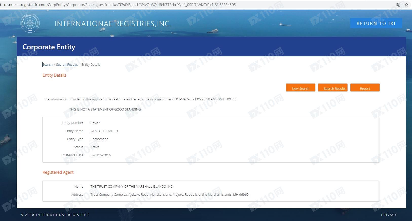 我們在馬紹爾工商頁有搜索到GEMBELL LIMITED的公司信息 ,但有注冊不代表有監管,馬紹爾不監管金融衍生品。