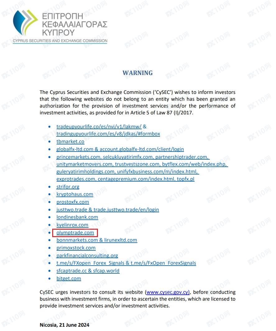 2024年8月15日新增塞浦路斯證券和交易委員會(CySEC)警示圖如下: