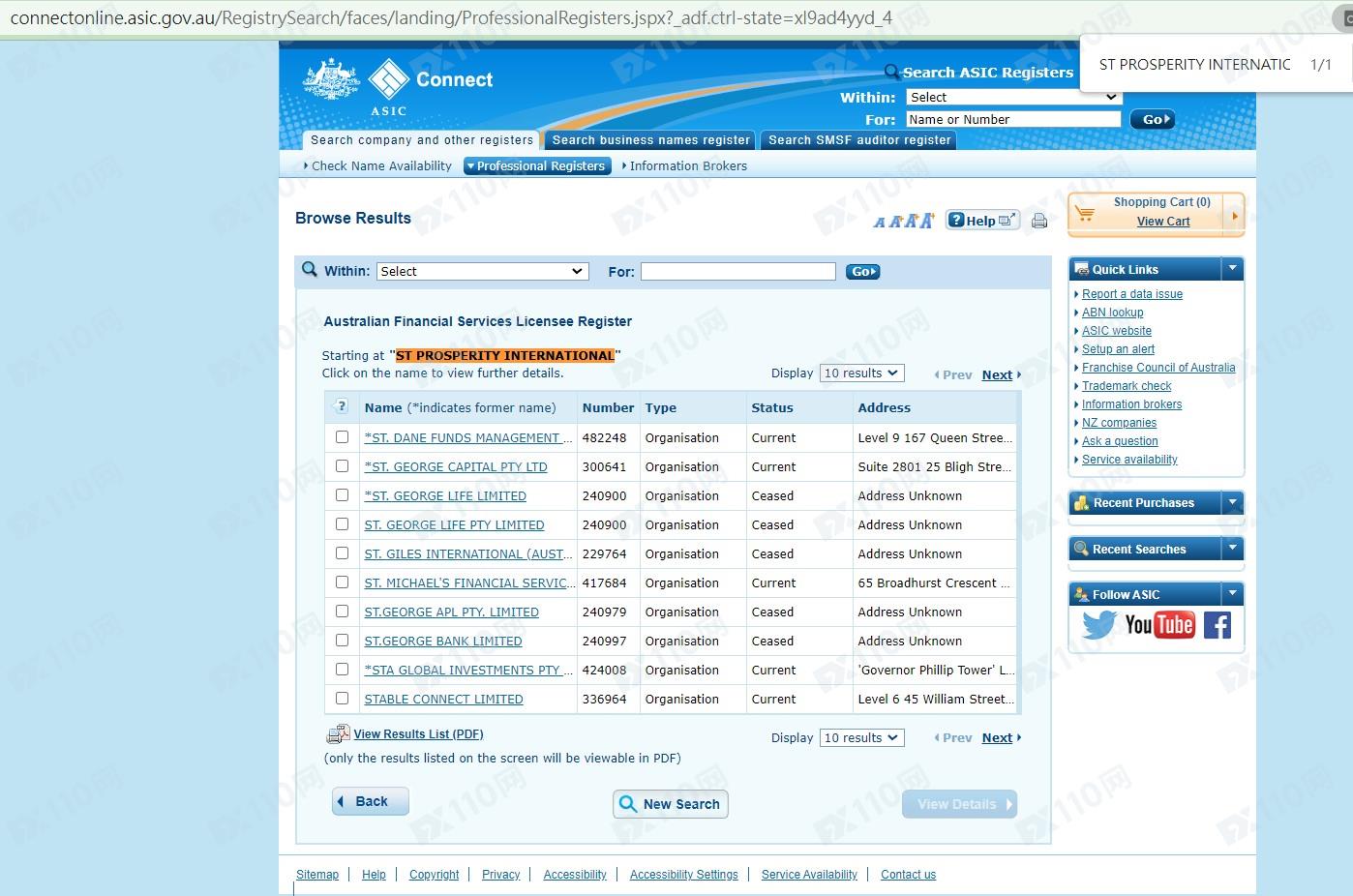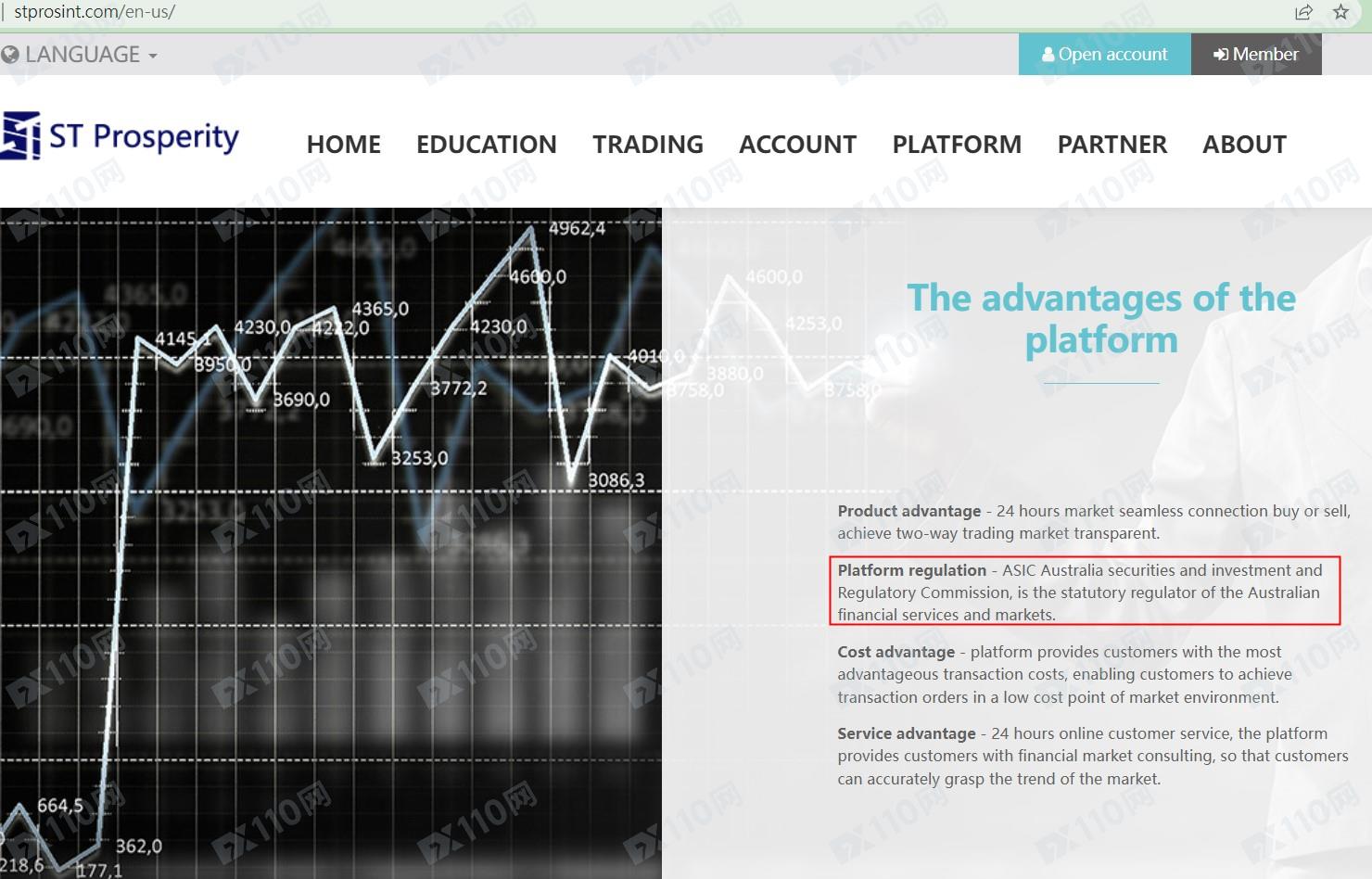 該平臺宣稱提供外匯、股指、能源、貴金屬等交易服務,由ST PROSPERITY INTERNATIONAL LIMITED運營,公司注冊于馬紹爾,注冊號202084,受澳大利亞證券及投資委員會(ASIC)監管。