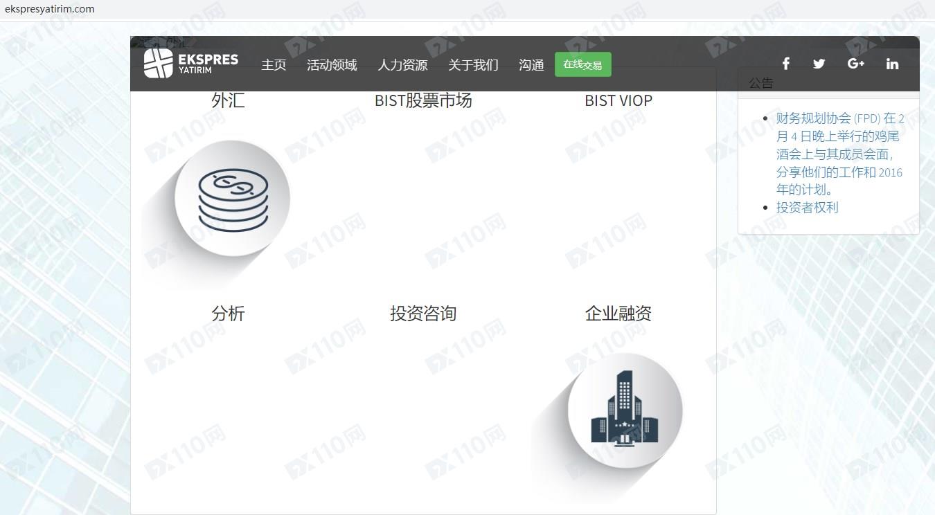 EKSPRES YATIRIM平臺宣傳是一家土耳其的金融投資公司,提供外匯、股票等金融產品投資服務,但并未獲得金融監管局的授權許可。