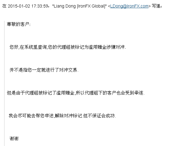 您好,新年快樂,我在貴網站有一段時日了,今有一事想拜托貴網站,我在鐵匯做了1年多,現在遇上資金出金被拒,原因是因為我受到返傭宣傳,另開設了新的賬號22031110使用EA交易.由于所在的代理組受到對沖嫌疑,因此也造成了我出金被拒,所以想拜托貴網站為我申訴,洗清不白之冤,希望平臺恢復我的正常出金申請.新年伊始,勞煩貴網站我深表歉意,同時也對貴網站滿懷希望,在此祝愿外匯110越辦越好更上一層樓,同時對貴網站受理我的申訴不勝感激.在此深深鞠躬謝謝了.同時期待回復.