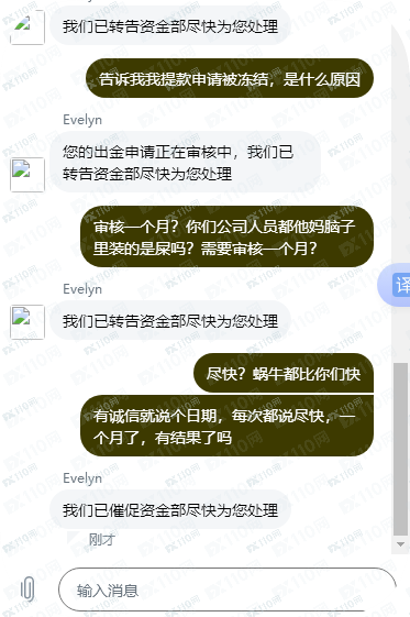 我於2025年8月26日,9月1日和11月19日分別在用戶中心申請出金,但是截止到現在,該公司都不予辦理,甚至將我的出金申請凍結了。期間我一直諮詢和催促該公司工作人員,其客服人員一直都在推脫,說已通知資金部安排,但是從來沒有給過任何明確的日期。