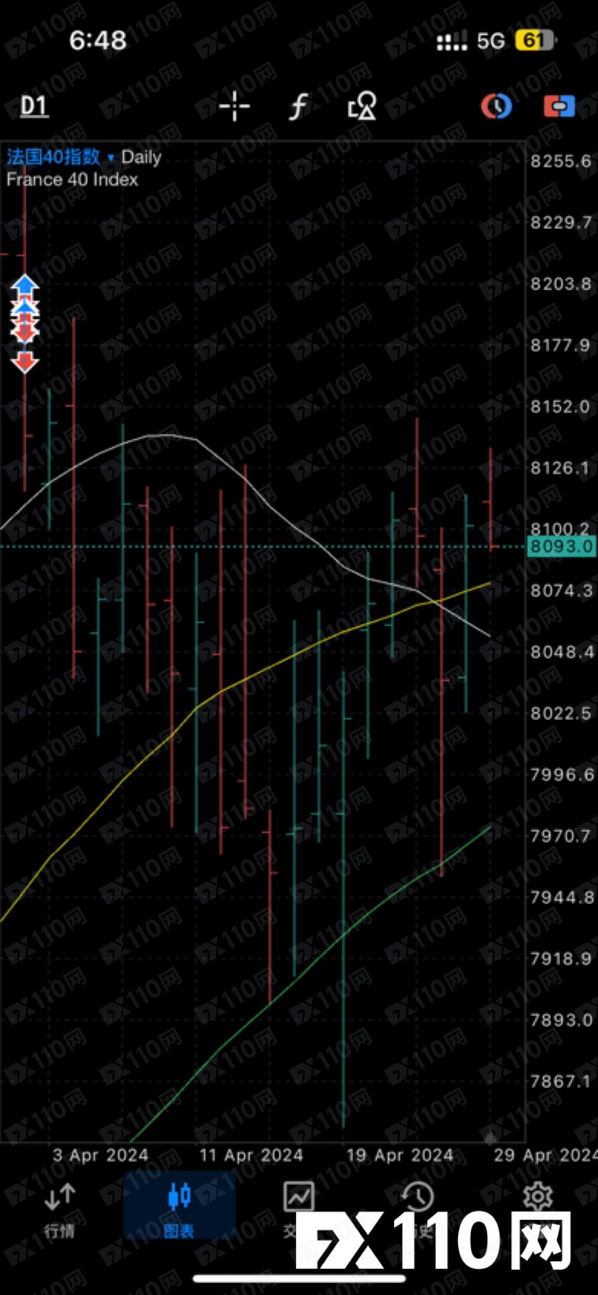 2024年4月29日,福匯的FRA40價差合約脫離現貨實物標的法國CAC40指數,完全反走。現貨突破上一日最高點,福匯價差合約直接低開跌破上一日最低點。這種操縱手法第一次見 。福匯價格跌破前日低點,嘉盛價格正常,和現貨一致,現貨日線圖和很多平台的走勢都是一致的,福匯法國指數開盤很晚,下午14:00開盤時實際價格比前一日高,福匯直接低開80點,導致我盈利倉位變浮虧,損失近2萬。