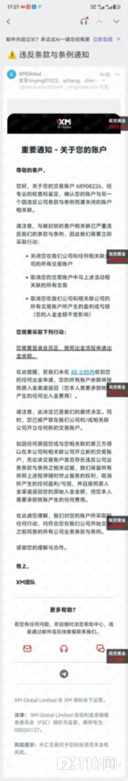 我的帳號68908226,剛開戶兩天,獲利不到1500美金,我要出金的時候就被惡意扣除,xm給出的解釋是關聯帳戶違規,簡直是不能理解,我是在正常交易。希望XM有點良心,退我的錢,太沒信用了,只會倒牌子,是你們代理讓我開戶的, 我個人認為應該給xm一個人類有史以來最成功的詐騙獎可能更適合,這個XM號稱業內世界金融100確確實實是個最成功的外匯騙子,外匯詐騙商。找客服 客服作出的解釋也是讓我以郵箱收到的郵件為準 這擺明了是要把我盈利的利潤扣走 只肯讓用戶輸錢 不肯讓用戶贏錢嗎?