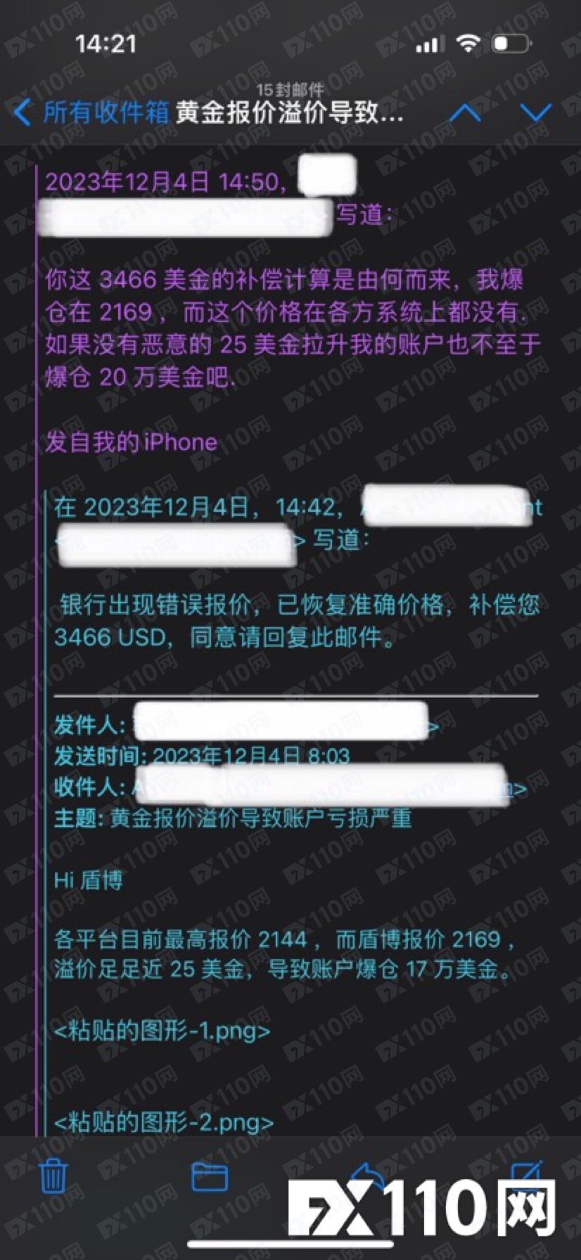 另外了解到當時盾博並不是所有的帳戶都出現了溢價的情況,此後再次致電過去對方就已經是空號了,而且回復任何跟此事相關的郵件對方都拒絕回答,在溝通長達半年之久只能選擇曝光,希望能幫我追回15萬美金的血汗錢。